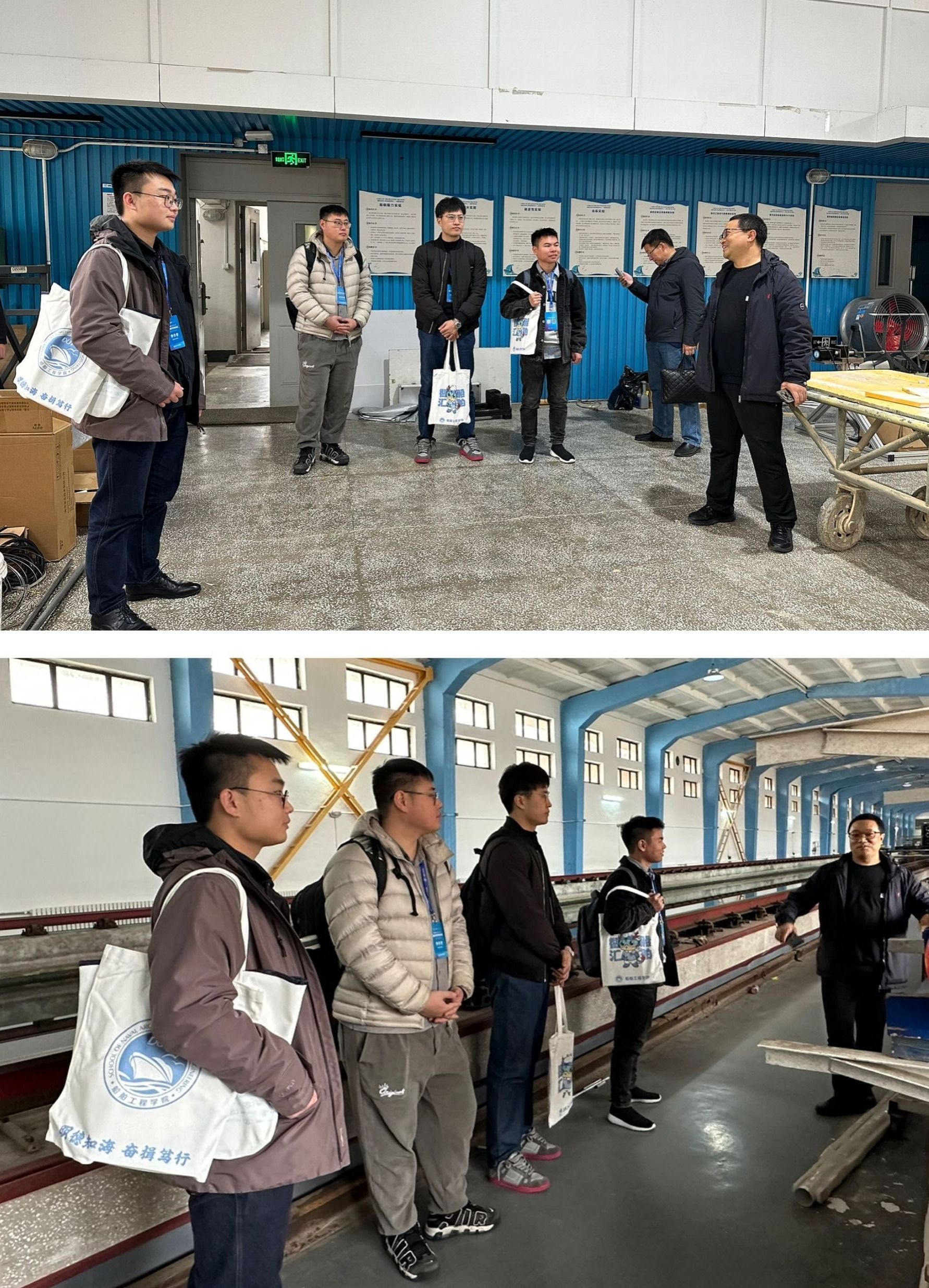 组织学者参观了学院拖曳水池实验室。裴玉国对实验室建设使用历程、规模及成果进行了详细说明,在实验设备操作、使用等方面进行深入交流。