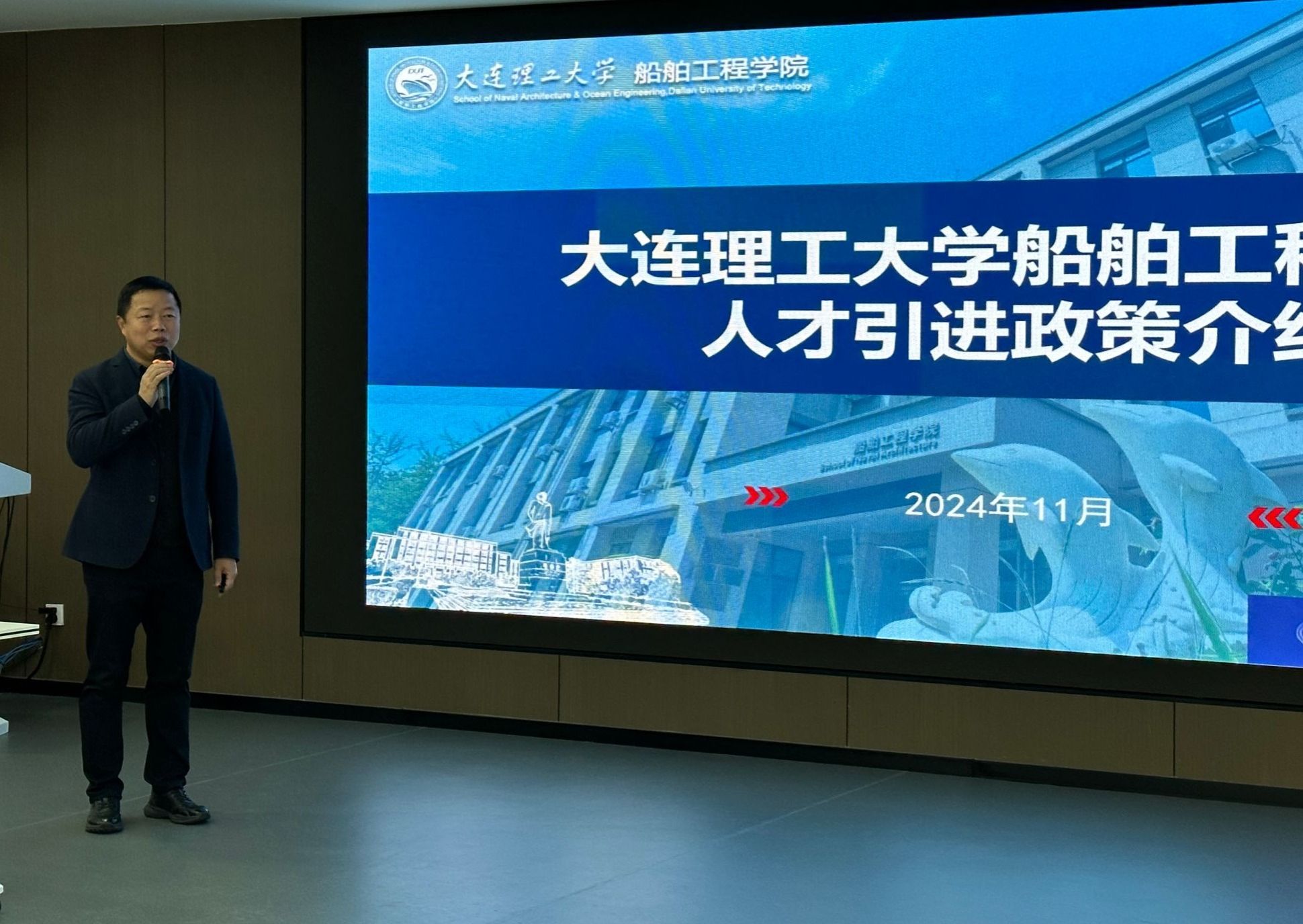 张桂勇就学院整体情况予以介绍,并对学院人才引进政策进行解读说明。向海内外学者展示学院发展历程,研究方向、多年来取得优异的科研成果,学院为青年人才提供的优厚待遇及发展空间,希望海内外青年学者加入船舶学院,携手谱写美好华章。