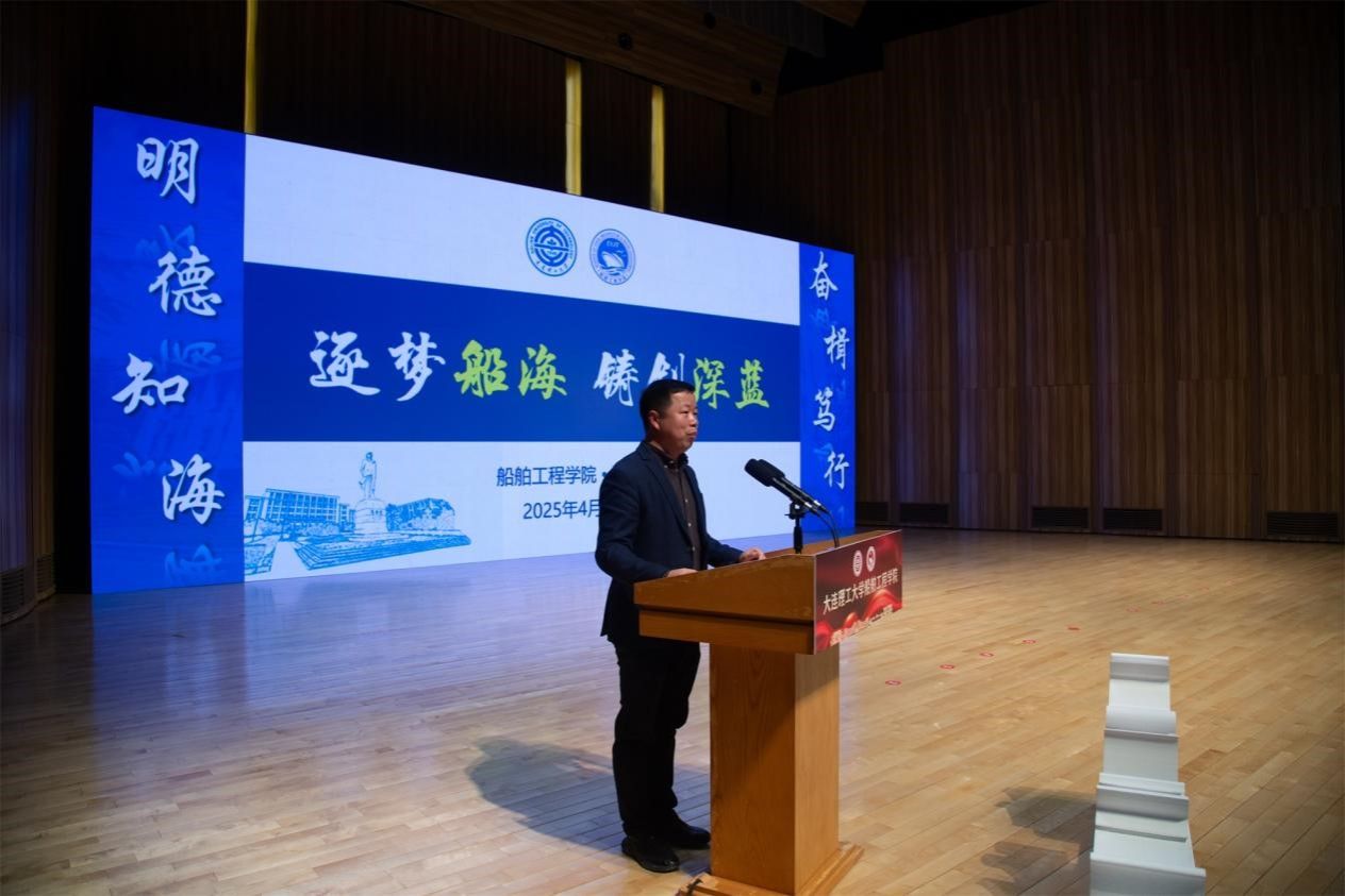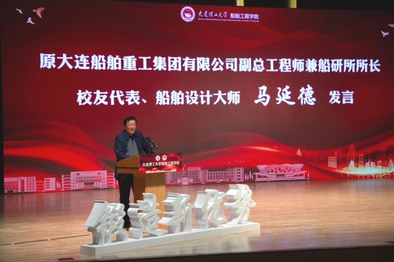 校友代表、船舶设计大师马延德先生以“船舶人的使命与担当”为题发表演讲。他回顾了四十余载深耕船舶设计的历程,并寄语学子:“中国造船业正迈向深蓝,希望你们以技术为桨、以创新为帆,成为新时代的领航者。”