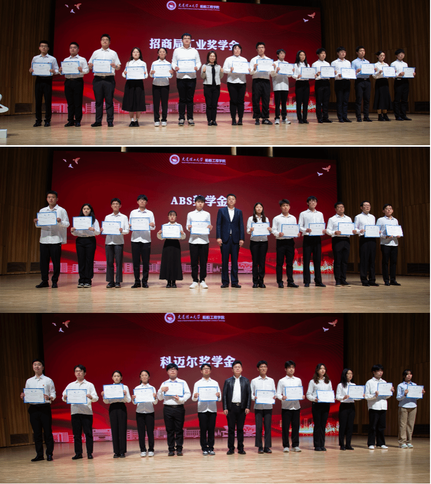 大会特邀多位设奖企业嘉宾为专项奖学金获奖学生颁奖,校企联动,共育行业英才。招商局工业、ABS船级社、科迈尔海洋科技等企业代表亲临现场,为获表彰学子颁发荣誉证书。