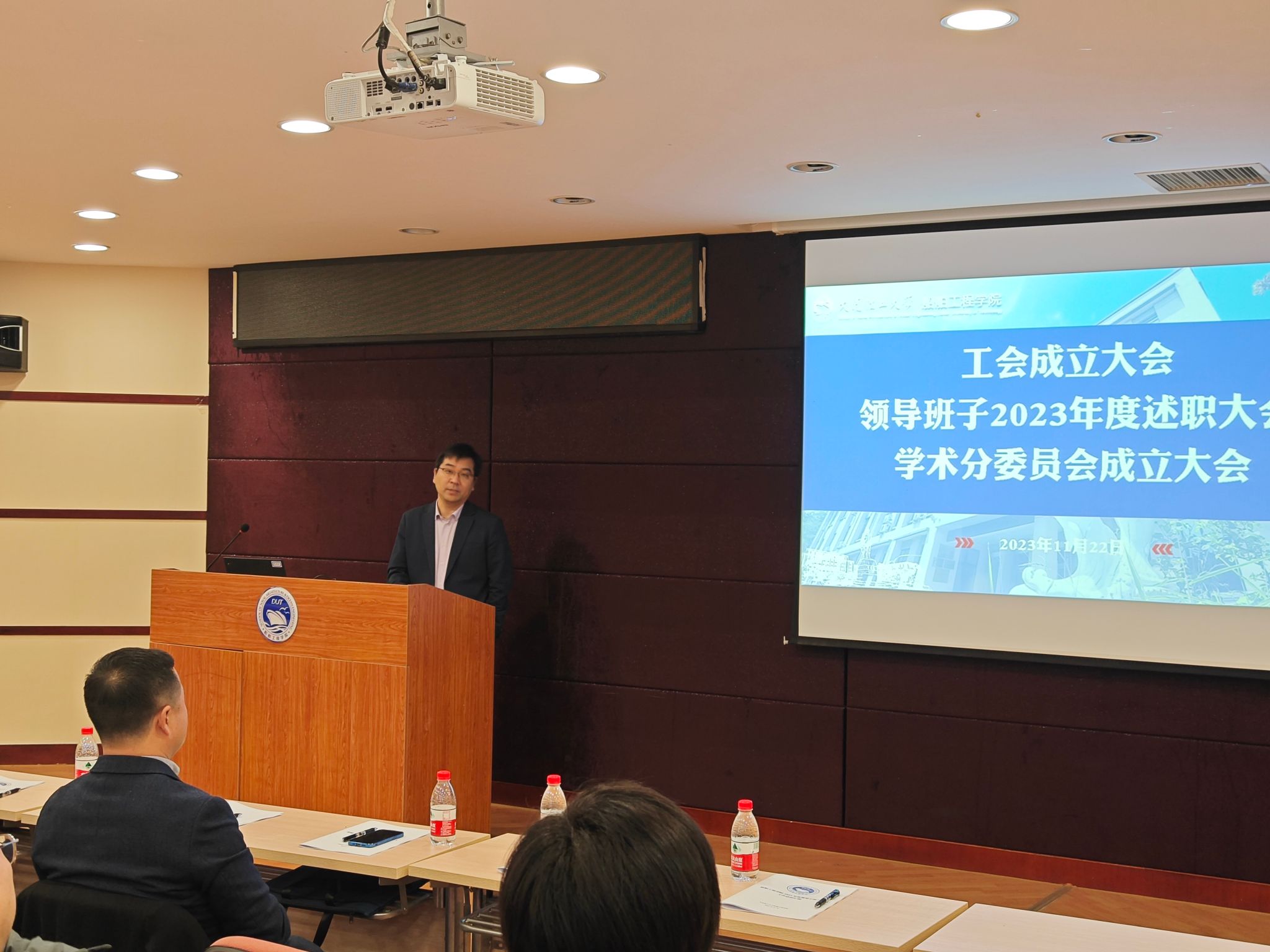 为深入贯彻落实学校第十四次党代会精神和“五个坚定不移”工作要求,紧紧抓住学校党委深化传统优势学科部院体制改革契机,凝心聚力推升学院发展新高度,11月22日下午,太阳成集团tyc41183召开全体教职工大会,成立学院工会和学术分委员会,进行学院领导班子年度述职考评。