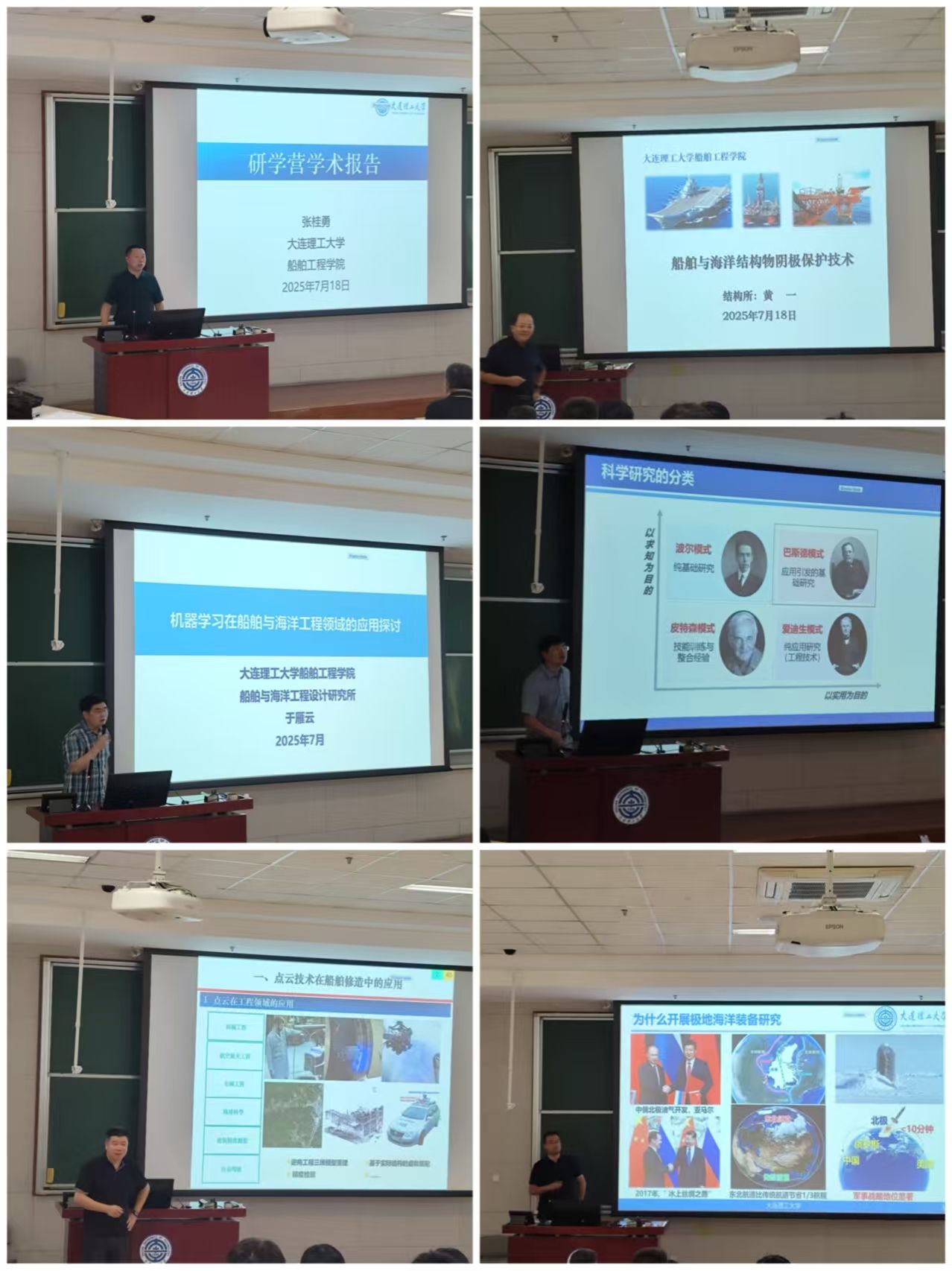 7月18日上午,在海川楼B105举行研究所学术报告,来自学院各研究所的教授和副教授们,分别就各自的研究方向、研究成果、实验室氛围以及学生发展等方面进行了精彩的学术汇报。这些报告不仅涵盖了船舶与海洋工程的多个前沿领域,还融入了丰富的科研经验和学术思考,为营员们提供了宝贵的学术启迪。
