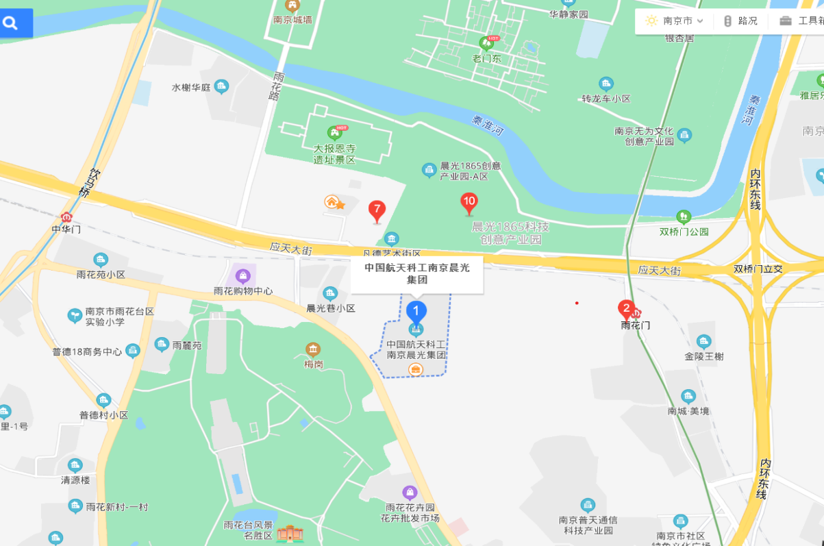 中国航天科工南京晨光集团(以下简称“公司”)隶属于中国航天科工集团,是国有大型军工央企,位于江苏南京风景秀丽的雨花台旁、秦淮河畔,为“南京市园林式单位”。公司前身是中国近代洋务运动时期两江总督李鸿章于1865年创办的金陵机器制造局,至今已有159年的历史,是我国最早的四大兵工厂之一,被誉为近代民族工业的摇篮。公司目前主要从事国家重点航天产品和民用高端智能装备的研制生产,拥有2家控股子公司、3家研究所、5家参股公司、7家分公司及分厂。公司位于南京市主城秦淮区,交通便利,占地面积2500亩,建筑面积38万平方米,总资产100多亿元。