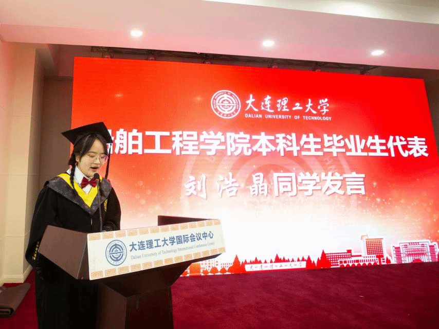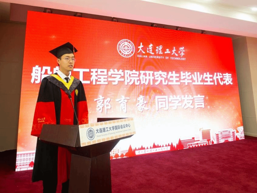 博士毕业生代表郭育豪分享了自己在大工难忘的十年岁月,见证着学校和学院的变化,感恩母校提供了追求卓越的广阔平台,感恩学院为他逐梦深蓝的梦想插上翅膀。他决心继续深耕科研,为学院发展贡献一份力量。