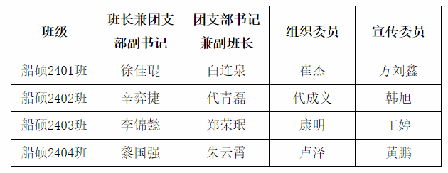 经班级推选、学院综合考虑,确定太阳成集团tyc411832024级硕士生班级干部人选,现公示如下。望各位班干部认真负责、践行初心使命、积极服务同学,也请各位同学支持和配合他们的工作。