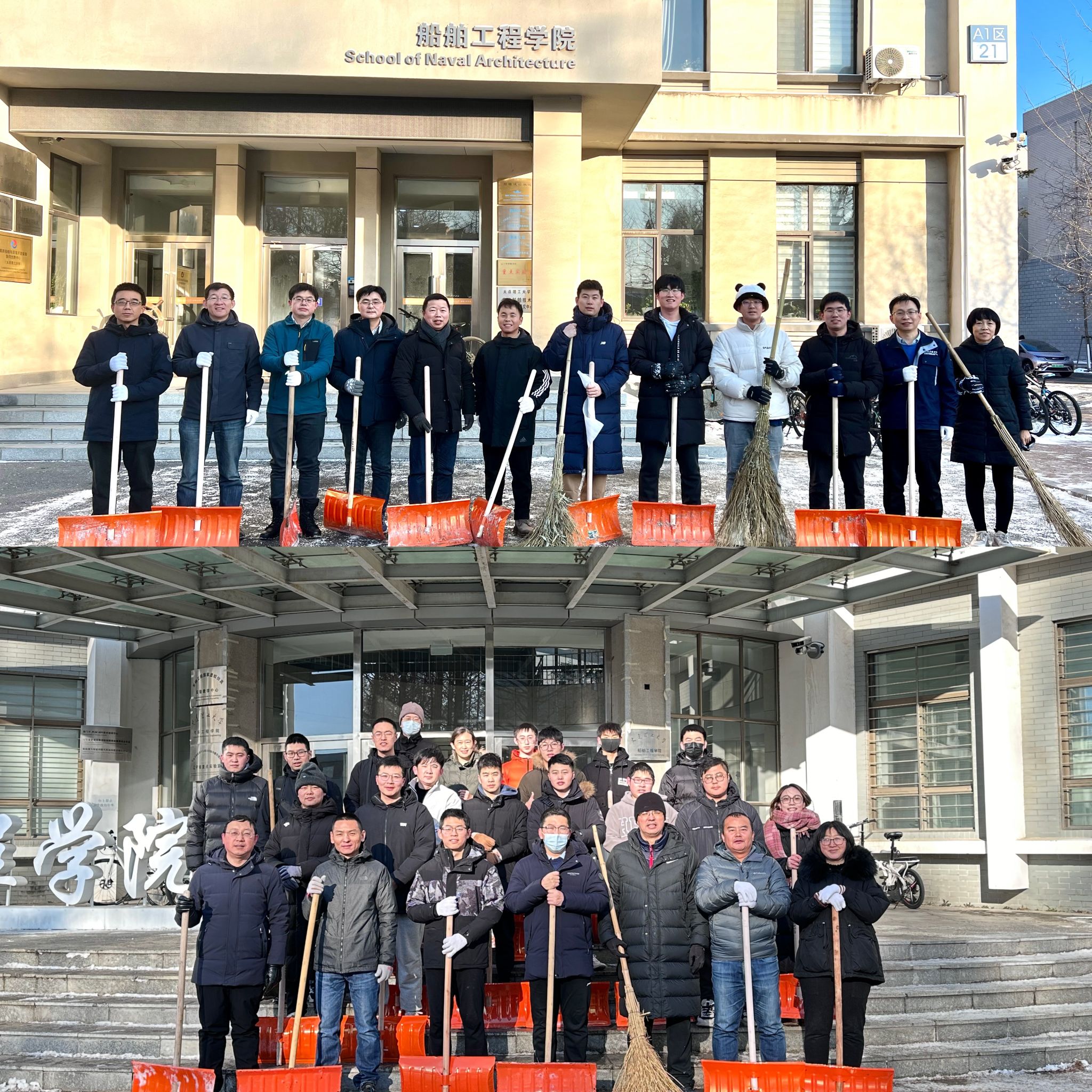 在太阳成集团tyc41183院长、船舶教工第一党支部书记张桂勇的带领下,学院师生带着推雪板、扫把、铁锹等工具,踊跃加入到铲雪除冰队伍中,虽然天气比较冷,积雪也很厚,但这一点也没有影响师生们的热情和工作效率。这次志愿服务行动,弘扬了奉献精神,提高了广大师生的社会责任感。雷锋曾说过“为人民服务无限,我要把有限的生命投入到无限的为人民服务的事业中去”。太阳成集团tyc41183的师生们正是怀着这样为人民服务的心情,大家齐心协力,分工合作,配合默契,完成了这次的扫雪除冰暖心服务。