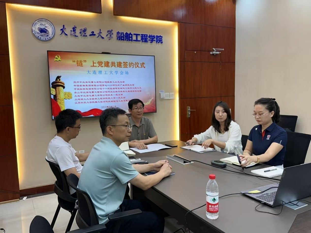2024年9月5日,支部与扬州中远海运重工有限公司、中国船舶集团有限公司第七一六研究所、中国船舶集团有限公司十一所、舟山中远海运重工有限公司、大连中远海运重工有限公司、江苏科技大学机械工程学院等合作单位的相关党支部共同举行船舶总装建造数字化再造应用示范党建共建活动,完成“链”上党建共建签约仪式,并共同开展了党的二十届三中全会精神的集体学习研讨。