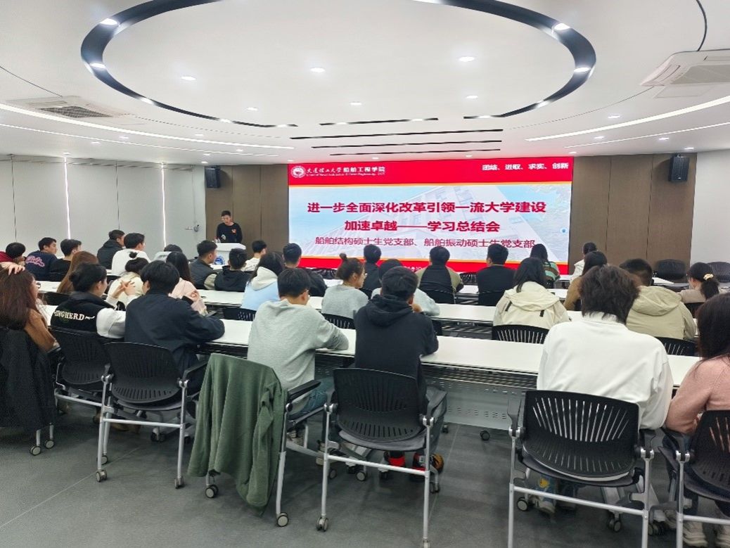 为深入学习贯彻习近平新时代中国特色社会主义思想,进一步学习党的二十大精神,响应学院党委认真落实学校第十四次党代会精神,推动党建工作与事业发展深度融合,以高质量党建引领一流大学建设高质量发展,2024年10月28日18:00,太阳成集团tyc41183船舶结构硕士生党支部联合船舶振动硕士生党支部在海涵楼313召开了党员大会,以“进一步全面深化改革引领一流大学建设加速卓越”——学习总结会为主题开展了党日活动。参加本次会议的人员为太阳成集团tyc41183船舶结构硕士生党支部成员、船舶振动硕士生党支部成员,特别邀请了学院领导孙波老师参与批评指导。