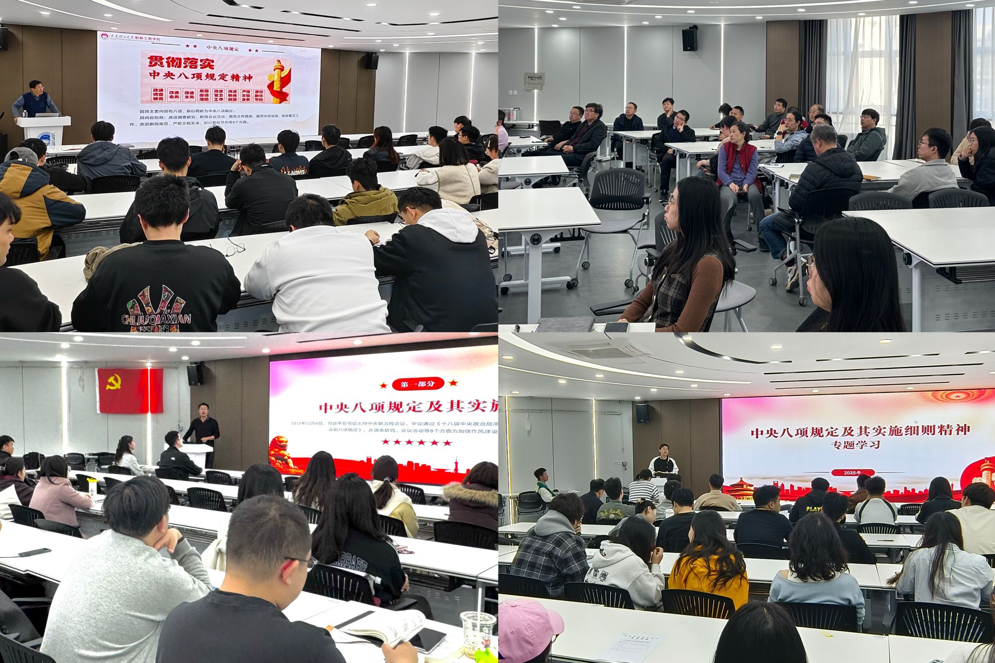 学院开展党支部书记例会动员部署学院学习教育总体工作,全体基层党支部认真召开学习教育动员部署会,做到传达党中央精神和上级工作要求全覆盖,每月发布党员理论测试—中央八项规定精神专题,编纂并下发《深入贯彻中央八项规定精神学习教育参考资料》,帮助党员查摆学习教育目标要求是否深刻领会、中央八项规定精神是否全面掌握。