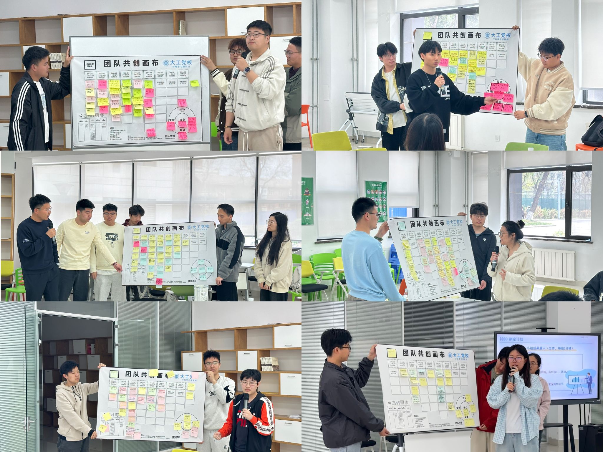 各组围绕所选主题,展开“可视化研讨”:学员用彩油墨笔手绘心中的党建工作图景,所有成员通过绘制符号、图表、图像等可视化元素,具象化呈现对选题的理解,并推选代表进行创意解读,将抽象思路转化为具象表达。小组代表结合画作汇报时,指导老师现场点评,引导学员从“艺术思维”回归“党建逻辑”,让创意与实务深度结合。