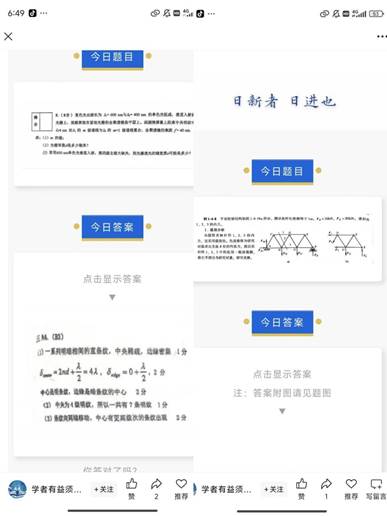 支部强化组织保障,推动学习氛围营造,在党支部指导下,由各班委轮值负责。围绕高难度科目,精心筛选具有梯度、覆盖重点难点的典型题目。依托级队微信公众号,党支部骨干每日定时推送题目及解析,在线上平台形成“闹钟”效应,激发讨论热情,“学霸党员”带动“潜学霸”,集体智慧攻克难题。活动参与度超70%,有效串联零散知识,培养每日学习习惯。以上学期坚持发布每日一题的理论力学为例,23级成绩中位数为82.5分,对比22级74分,显著提升,高分段比例(均分86+)占比16.67%,比22级同期高分段比例高出近15个百分点。
