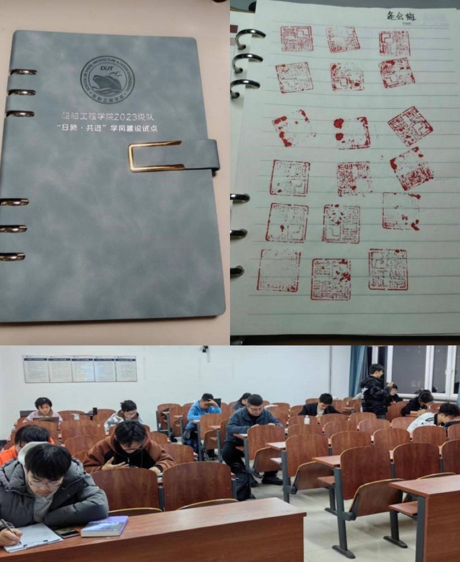 在辅导员党员统筹和学生党员骨干、级队委员组织下开展,创新形式,推出充满仪式感的集体自习“印章打卡”活动。定制专属“自习打卡册”和打卡印章。党员骨干带头参与,每日发布自习地点,现场组织并盖章认证。活动累计参与率超80%,满页的印章成为个人坚持与集体共进的生动见证,有效帮助同学克服惰性,实现从“要我学”到“我要学”的转变,养成规律学习习惯,提升学习效率和专注度。
